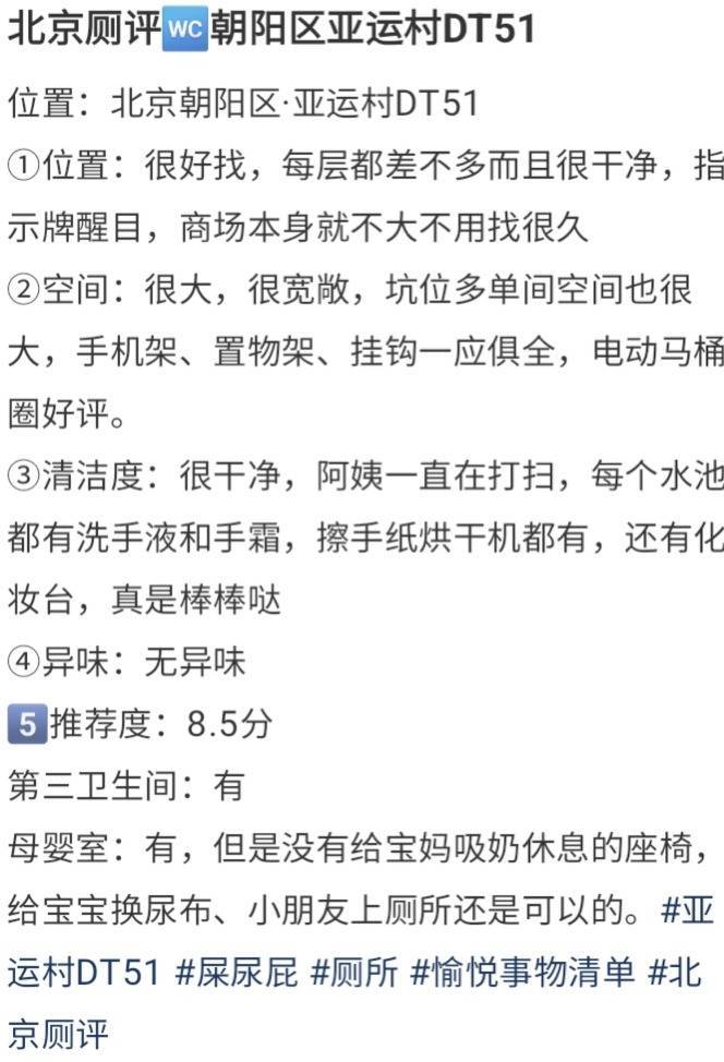 没错,在吃喝测评屡见不鲜的今天,关于厕所的精细化评测也能悄然走红。最近,社交平台上涌现出一系列专注“厕评”的帖子,引发关注。