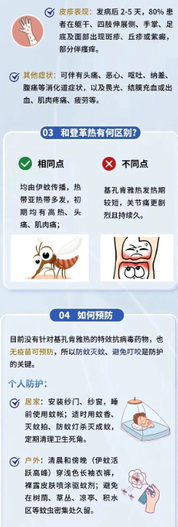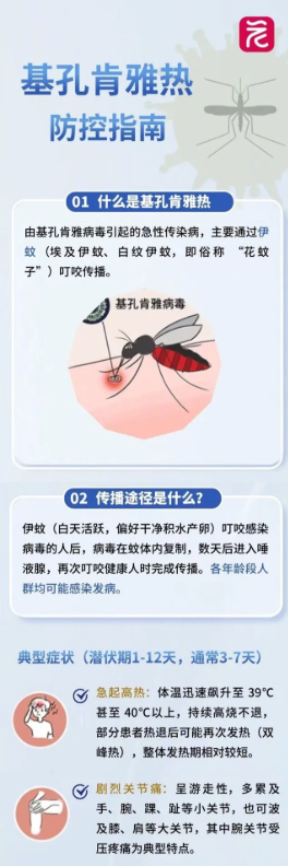 7月23日,在国家卫健委举行的新闻发布会上,中国疾控中心研究员段蕾蕾介绍,近期,我国南方个别城市发生基孔肯雅热输入疫情并引发本地传播。个人如果出现高热、关节剧痛、皮疹的情况,尤其是有蚊虫叮咬史或者疫区旅居史者,要立即就医治疗。