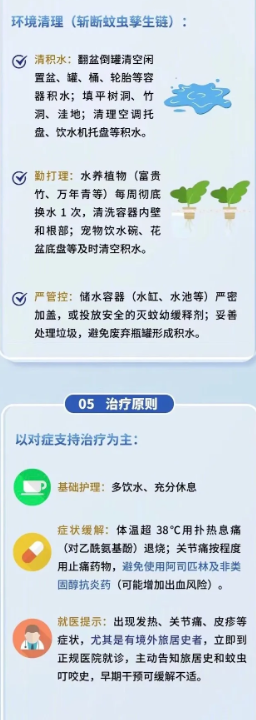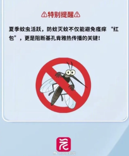 “建议公众做好个人防护。”段蕾蕾说,白天外出时建议穿着浅色的长袖衣裤,如果有裸露的皮肤要涂抹含避蚊胺和避蚊酯的驱蚊产品驱蚊,避免在树荫和草丛等蚊虫密集的地方长时间停留。家中可安装纱门和纱窗,晚上睡觉时可使用蚊帐,必要的时候要配合电蚊拍和蚊香液灭蚊。